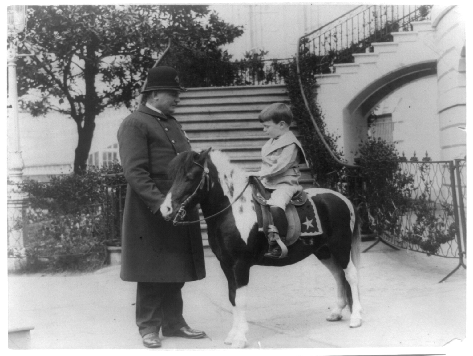 Case in point: the time when young Kermit and Quentin Roosevelt took their pet pony Algonquin upstairs in the White House (via the elevator) so that he could visit their brother Archie who was sick in bed.
